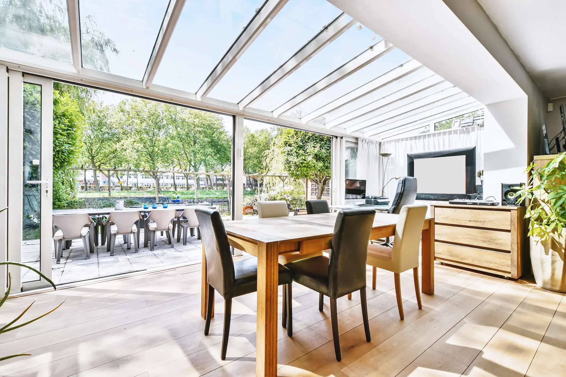 Transformez votre véranda en un espace adapté à vos besoins : salon, salle à manger, bureau ou serre pour vos plantes.